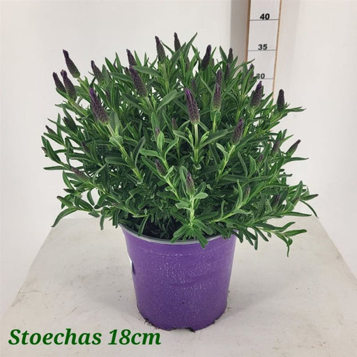 Lavandula stoechas, commonly known as Spanish lavender, is a versatile and resilient evergreen shrub prized for its aromatic foliage and vibrant fl...