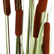 In nature the bulrush (or cattail) is usually found on the banks of ponds and rivers, but now you can also enjoy it in your own home! This artificial bulrush plant is indistinguishable from the real thing. The characteristic cigar-shaped plumes have been perfectly replicated making it instantly recognisable. The foliage comes in various shades of brown and green for a natural look. The plant comes firmly anchored in a black plastic pot, but needs to be shaped before use. After spreading the foliage, position the plant as desired, or use the supplied pot as a secure base inside a more decorative planter. The artificial plant is made of PVC and requires no maintenance whatsoever. It will give you pleasure for years to come!