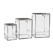 The fully transparent design offers 360-degree viewing, wire mesh top and side ventilation for optimal airflow.