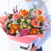 An exquisite arrangement of the freshest Mother’s Day flowers. Each bloom is chosen and exquisitely arranged by hand by our florist to order – so no two bouquets are the same. This year our Mother’s Day designs are all about gorgeous pastels with pops of colour. Expect to see blooms in shades of baby pink, cream, and lemon with bursts of cerise and tangerine, and highlights of pale blue and lilac.