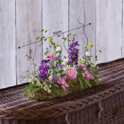 This natural looking casket spray features a beautiful array of tones and blooms including craspedia, alliums, roses and clematis. It's also made using a moss base, making it better for the environment.
