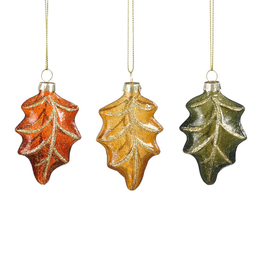 View full detailsLeaf Glass Hanging Christmas Decoration Orange, Yellow or Green (8cm)