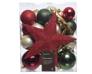 33 Pack Shatterproof Baubles, Icicles & Tree Topper Multicolour 5cm to 8cm