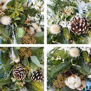 A quick rundown: a wreath inspired by the natural beauty of the winter season, handcrafted by our florist.
