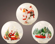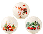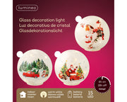Please note these are sold individually. Choose between these three different designs: Santa or robin or snowman. You can let us know by adding a message at checkout as to which you would prefer. We will do our best to accomodate you depending on which is available. Measuring 15cm diameter, these battery-powered table lamps feature a warm white LED light, perfect for enhancing the ambiance of your indoor spaces.