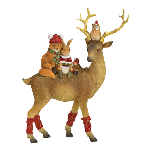 Christmas Decoration Woodland Deer With Animals in it's Back 20x25x8cm Color: Multicolor Material: Polyresin