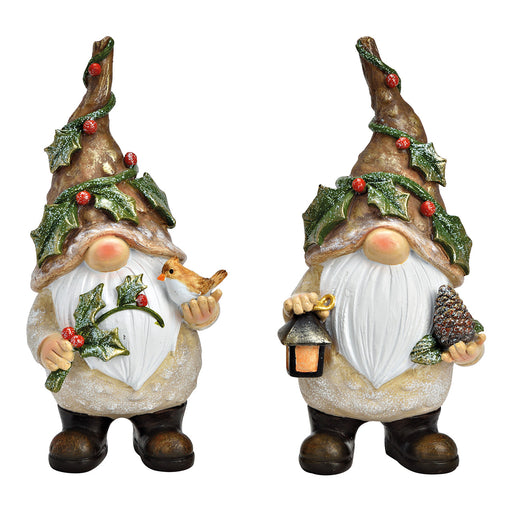 Christmas Decoration Gnome With Robin or Lantern 9x20x8cm Sold individually