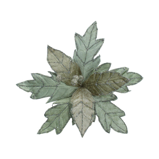 View full detailsPale Green Fabric/Glitter Poinsettia Decorative Christmas Pick (26x23x23cm)