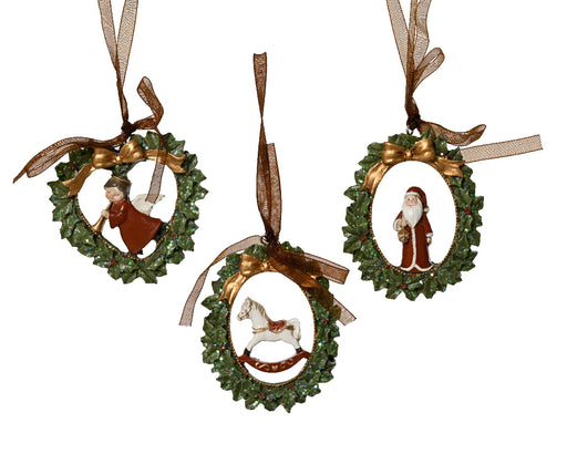 Christmas Hanging Decoration With Angel or Rocking Horse or Santa Glitter Green (7cm x 9cm) Please note: These items are sold individually.- colour...