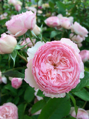 'The Mill on the Floss' is a romantic and fragrant rose from David Austin that brings tranquility and charm to any garden. This rose variety showcases large, fully double blooms in shades of soft pink and apricot, creating a dreamy and elegant display. The flowers have a classic Old English Rose form, with a delicate ruffled appearance. 'The Mill on the Floss' emits a strong, fruity fragrance with hints of myrrh and almond, adding an enchanting scent to the garden ambiance. This rose is known for its disease resistance and vigorous growth, making it a reliable and stunning addition to garden beds or as a cut flower. With its romantic blooms and captivating fragrance, 'The Mill on the Floss' is a cherished choice for gardeners seeking beauty and tranquility.