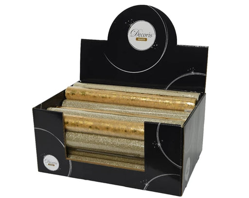 This decorative fabric is perfect for festive decorating. Featuring champagne-hued threads, and glitter and mesh accents, this fabric provides a un...