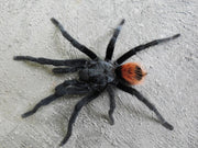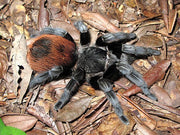 The Yucatán Rust Rump Tarantula, Brachypelma epicureanum, is a captivating species within the tarantula world, known for its distinctive coloration and relatively calm demeanor. This species is native to the Yucatán Peninsula in Mexico and is part of the 'New World' tarantulas. It features a striking contrast in colors, with a dark brown or black body and a distinctive reddish-brown or rust-colored rump. The Yucatán Rust Rump Tarantula is a popular choice among tarantula enthusiasts due to its beauty, manageable size, and temperament, making it suitable for both novice and experienced keepers.