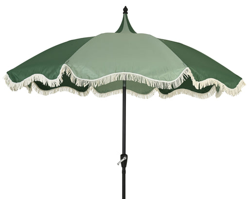 Outdoor Living parasol green 250 cm with fringesSummer days get an extra touch of atmosphere with this eye-catching parasol. This green outdoor acc...