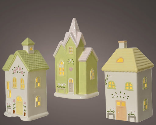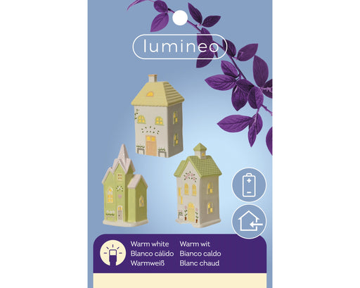 Lumineo Battery-Powered Porcelain Houses for Indoor UseA warm glow radiates from these finely decorated porcelain houses, inviting a cozy atmospher...