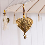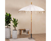Mahogany Parasol - White Cotton Fabric with Tassels