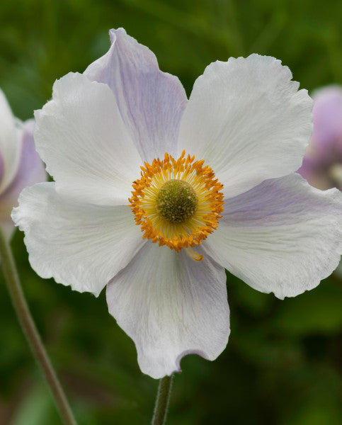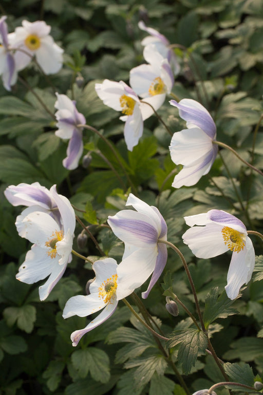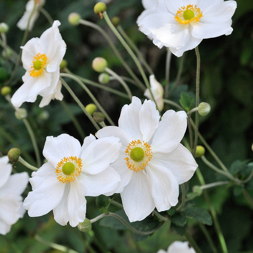 Anemone 'Wild Swan' is a delightful variety of Japanese Anemone. It stands out for its enchanting, nodding flowers that showcase pristine white pet...