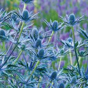 Eryngium 'Big Blue', commonly known as Sea Holly, is a striking perennial prized for its large, spiky, steel-blue flowers surrounded by spiny bracts. These bold, architectural blooms sit atop sturdy, silvery-blue stems that add texture and drama to borders and wildlife-friendly gardens. This variety is highly attractive to bees and butterflies and thrives in dry, well-drained soils, making it a fantastic choice for drought-tolerant planting schemes. ‘Big Blue’ also makes an excellent cut or dried flower due to its long-lasting, structural beauty.