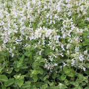 Nepeta racemosa 'Snowflake' is a compact, clump-forming perennial known for its delicate white flowers that bloom profusely above aromatic, grey-green foliage. This long-flowering variety attracts bees, butterflies, and other pollinators, making it an excellent choice for wildlife-friendly gardens. ‘Snowflake’ is drought-tolerant once established and thrives in well-drained soil, making it ideal for borders, cottage gardens, or rockeries. Its soft, cascading habit also works beautifully in containers or as edging along pathways.