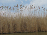 Phragmites australis, commonly known as common reed, is a tall, perennial grass that is found in wetlands and along waterways. It has feathery plumes of flowers that bloom in the summer, which give way to fluffy seed heads in the autumn. In Ireland, this plant is popular for its ability to absorb excess nutrients and pollutants from water, making it a great way to keep your pond clean. It is also valued for its aesthetic qualities, as its tall, graceful form and waving seed heads can create a beautiful, naturalistic look in garden and landscape designs.