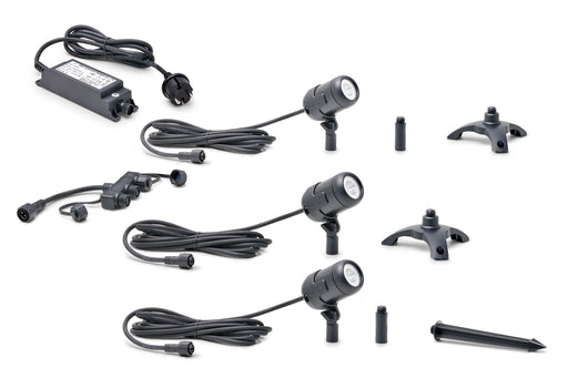 Product details -Lighting set with three compact warm white LED spotlights and one peg -With Li-ion battery 3.7 V - 1800 mAh -0.5 W LED spotligh...
