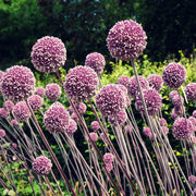 Allium 'Summer Drummer' is one of the tallest and most impressive of all Allium varieties. With its long, sturdy stems that can reach great heights, it towers over other plants, offering a magnificent display of star-shaped, lavender-purple flowers. These blooms gradually transition to silvery-white seed heads as summer progresses, providing prolonged visual interest. Accompanied by a pleasing, light fragrance and its characteristic drumstick shape, it's a favorite among gardeners looking for height and drama in their garden beds and borders.