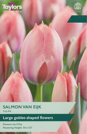 Tulip ‘Salmon Van Eijk’ is a charming late tulip, admired for its soft salmon-pink petals with subtle peachy undertones. The cup-shaped blooms open gracefully in mid- to late-spring, bringing warmth and gentle colour to borders, containers, and cut flower arrangements. Its elegant form and reliable performance make it a favourite for both formal and naturalistic gardens.