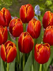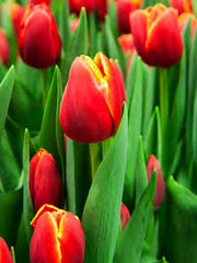 Tulip 'Verandi' is a stunning tulip variety that belongs to the Greigii group. This beauty captures hearts with its vibrant red blooms, often adorned with a golden-yellow fringe at the petal edges. The intricate color combination offers a fiery, sunlit appearance. One of the unique features of the 'Verandi' is its striking mottled or striped foliage, adding an extra layer of interest even before the blooms emerge. The low-growing nature of 'Verandi' combined with its dramatic colors makes it an ideal choice for borders, rock gardens, and pots.