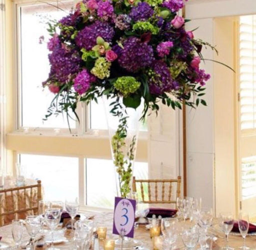 High Centerpieces with Hydrangea Rose Dendron Orchids sitting on a tall Glass Vase Starting From €350.00