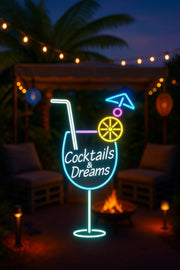 Decorate your garden, balcony or terrace with this neon light from Luca Lighting. The neon light is shaped like a cocktail with the text 'COCKTAILS & DREAMS' and instantly creates a summer atmosphere. Especially with the combination of the blue, pink and orange colours. The neon light has an IP44 European plug, with a cable length of 3 m, which is suitable for outdoor use. Do you already know where to hang the neon light? Also nice to combine with other neon lights from Luca Lighting.