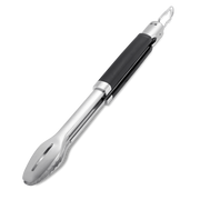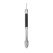 Handling food on the barbecue is easy with Precision Barbecue Tongs. The durable stainless-steel construction and soft-touch handle provide complete control with a comfort hold. The flat front edge design allows you to easily get under food as you lift and turn fragile foods like vegetables and fish, while the precision grip makes moving a heavy rack of ribs effortless. The hands-free locking mechanism closes the tongs for quick and easy use and compact storage.
