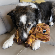 KONG Low Stuff Stripes’ irresistibly soft plush and floppy bodies invite comforting cuddles while the lower tone squeaker keeps dogs engaged. Unique, high-contrast stripes make these barnyard buddies easy to spot and their legs are shaped so that all sizes of dogs can grab them. Minimal stuffing for less mess.