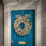 24 Inch Snowy Sheffield Spruce Pre-Lit Wreath with 50 Warm While Lights Battery Operated