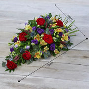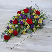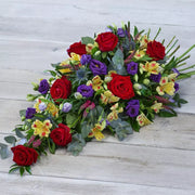 This teardrop shaped arrangement features blooms in a beautiful assortment of colours, including roses, lisianthus and alstroemeria.