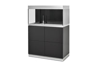 - CLEAN CONTOURS: The handle-free cabinet doors with push-to-open function ensure a clear design and the aluminium strips on the aquarium cover up unattractive edges