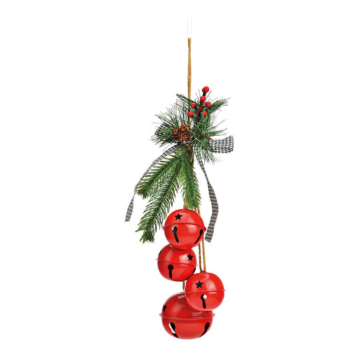 Christmas Hanging Decoration Red Jingle Bells With Pine, Berries and Ribbon 10x30x8cm