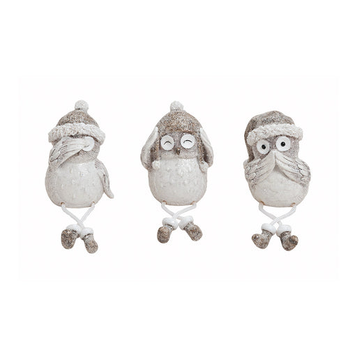Christmas Decoration Owl With Glitter 12cm   Please note: Sold Individually.    Choose between hear no evil, speak no evil, see no evil.