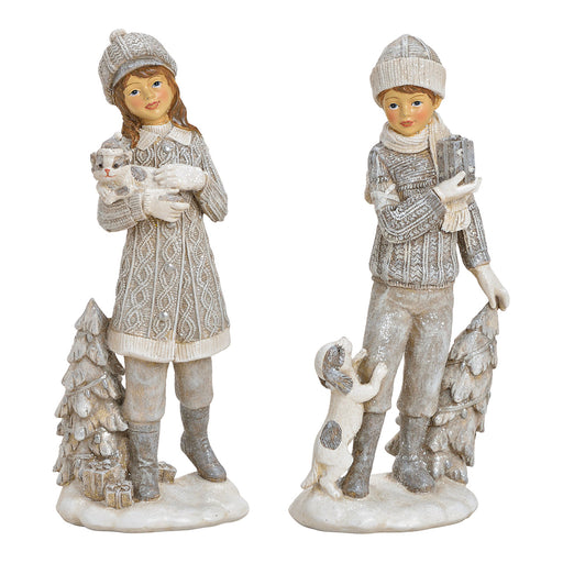 Christmas Decoration Winter child Girl With Dog or Boy Cat 10x22x7cm Sold Individually