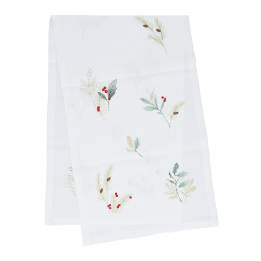 Christmas Table Runner With Embroidered Sprigs 40cm x 140cm