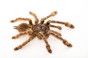 Appearance: This tarantula is easily recognizable by its striking coloration and pattern. It features a mix of earthy browns and subtle greys, with distinctive feather-like patterns on its legs. These unique markings give it the common name "Feather Leg Baboon." Its hairy legs and body, combined with a robust build, add to its exotic appearance.
