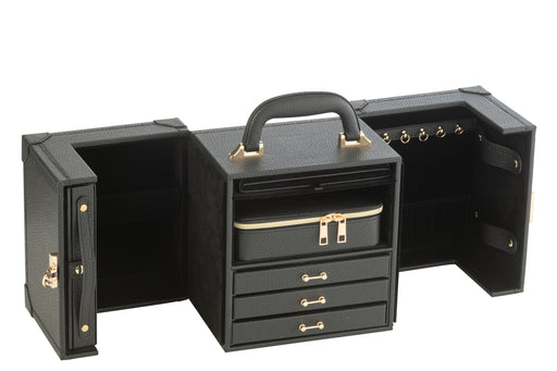 Jewelry Case With Handle Artificial Leather Black 22cm