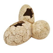 Betta Dinosaur Eggs will provide your fish with places to hide, explore and even breed. You could combine them with our other Dinosaur ornaments, Stegosaurus (MS699) and T-Rex (MS698), or they may represent the eggs of many other different creatures that are found in or near water. This natural looking piece of decor will look great in any aquarium, vivarium, or terrarium. Approximate dimensions 20.5cm (l) x 15cm (w) x 13cm (h).