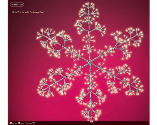 View full detailsLumineo LED Silver Snowflake Light Outdoor Metal Frame With 336 Warm White Lights (H.82cm)