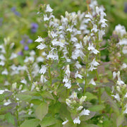 Lobelia siphilitica 'Alba', commonly known as the White Cardinal Flower, is a striking perennial aquatic plant. It is admired for its elegant, tall spikes of pristine white flowers, which bloom gracefully above the foliage. This plant is native to North America and thrives in moist to wet conditions, often found near streams, ponds, or in marshy areas. It is a magnet for pollinators, especially attracting bees and hummingbirds, making it an ecologically valuable addition to any garden.