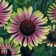 A truly amazing colouring on one of our customers’ favourite plants. Echinacea ’Green Twister’ brings you all the characteristics of a coneflower but with a striking two tone flower. Lime green petals are almost horizontal as they fan out from carmine red centres. Superb in perennial borders and wildlife areas where it will attract butterflies and other insects to its blooms. Makes a dramatic cut flower too.