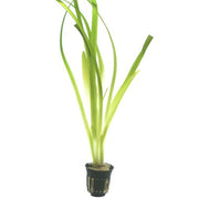 Vallisneria sp. Gigantea from Asia is an easy plant that grows fast, suitable for large aquariums. In most aquariums the leaves grow so long that they float on the surface (50-150 cm, 2 cm wide). So the plant needs pruning to stop it taking too much light from plants growing beneath. The leaves are tough and strong, so they are not normally eaten by herbivorous fish.