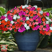 Illuminate your garden with the tropical tones of Busy Lizzie 'Beacon Mixed’. Busy Lizzies are back on trend, flaunting exotic colours, long flowering times and lush leaves. These easy-to-grow and reliable plants do well in pots or borders, in sun or partial shade and will reward very little effort with bright splashy flowers all summer long. Exceptionally long flowering, you can expect continuous blooms throughout summer and into autumn. These well-branched, free-flowering annuals come from the latest breeding in disease-free Impatiens, with excellent resistance to downy mildew.