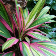 Leaf Colors: The leaves of Cordyline fruticosa 'Kiwi' showcase a mix of vibrant colors, including pink, green, cream, and burgundy, often forming a striking variegated pattern.
