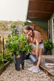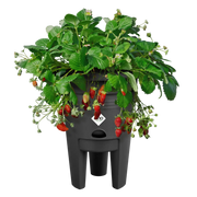 Everyone loves strawberries. Their sweet fragrance, delightful flavour, and beautiful red colour make them irresistible. Growing your own strawberries is fun, but it's not always easy. Because although they look and taste wonderful, they can be very fragile. Too little water? The berries won't grow. Pot rim too narrow? The runners will break off. Fruit left on the ground for too long? Rotten strawberries or no strawberries at all (because the snails beat you to them). Luckily, there's an easy way to avoid these problems: the elho green basics strawberry pot.