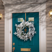 The 24 inch Misty Mountain Pre-Lit Christmas Wreath with pine cones and with 50 Warm White Lights is Battery Operated with a timer function (8 hours on - 16 hours off). Perfect for any home, its 279 frosted tips will add a magical winter ambiance.