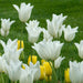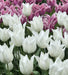 The Tulip 'White Triumphator' is a graceful member of the Lily-flowered Tulip group, celebrated for its elegant, elongated white blooms that appear to dance upon their stems. These tulips, with their slender and pointed petals, exude purity and sophistication. Their stems, tall and sturdy, hold the pristine blooms aloft, allowing them to sway gently in the breeze, adding movement and serenity to spring gardens. 'White Triumphator' acts as a beacon of tranquillity among more colorful spring blooms, offering a peaceful counterpoint in diverse garden settings.
